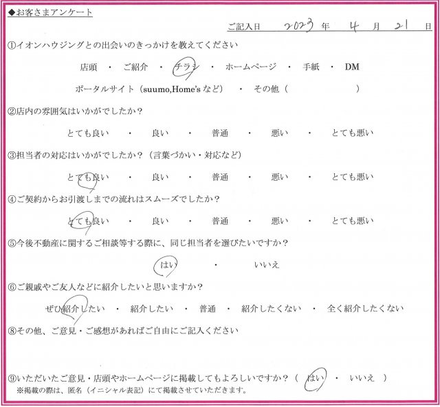 - 初めての売却でわからない事も親切に対応して頂き、不安感も消えました。